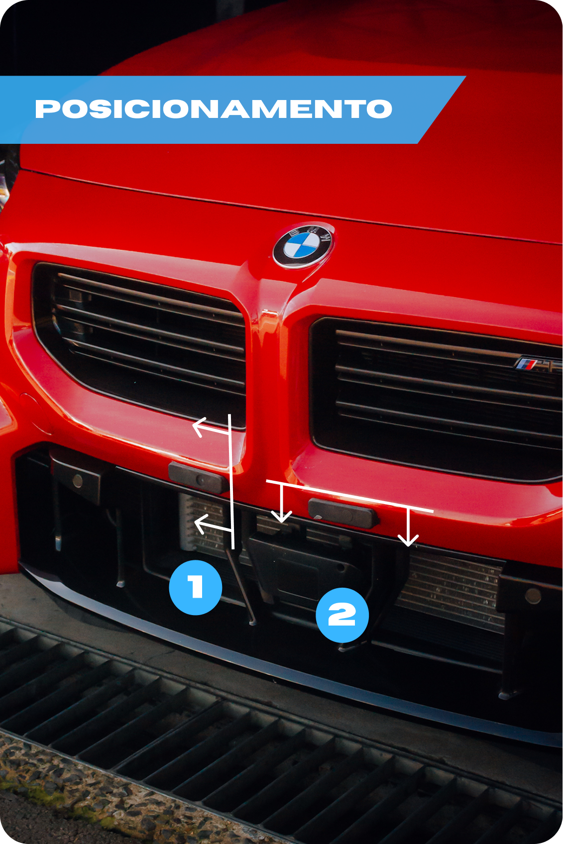 1. Ponto: Suporte deve ficar a esqueda da linha, na parte plana do parachoque, não deve ser